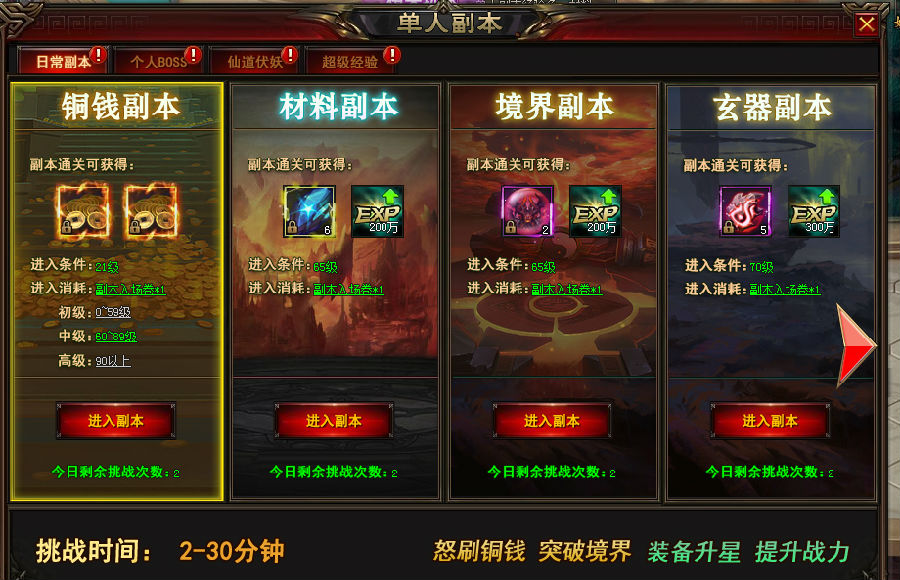 1) 每日可以进入2次,可以获得大量经验和道具奖励
